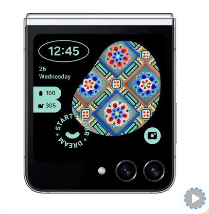 가장 큰 변화로 꼽을 수 있는 것은 바로 외부 디스플레이화면입니다. 이전 모델에 비해 커버디스플레이가 2개 커진 슈퍼아몰레드 3.4inch라고 합니다. 전작인 플립4의 커버 디스플레이가 1.9inch였던 것과 비교하면 정말 많이 커져 사용자의 편의성이 높아진 걸 확인할 수 있습니다.