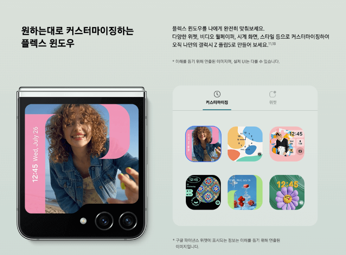 또한 커버디스플레이에서 위젯을 확인 할 수 있기 때문에 플립을 열었다가 조정하고 다시 닫는 부분이 개선되어 사용자 입장에서 편해졌다고 합니다. 위젯은 총 14개까지 제공됩니다.